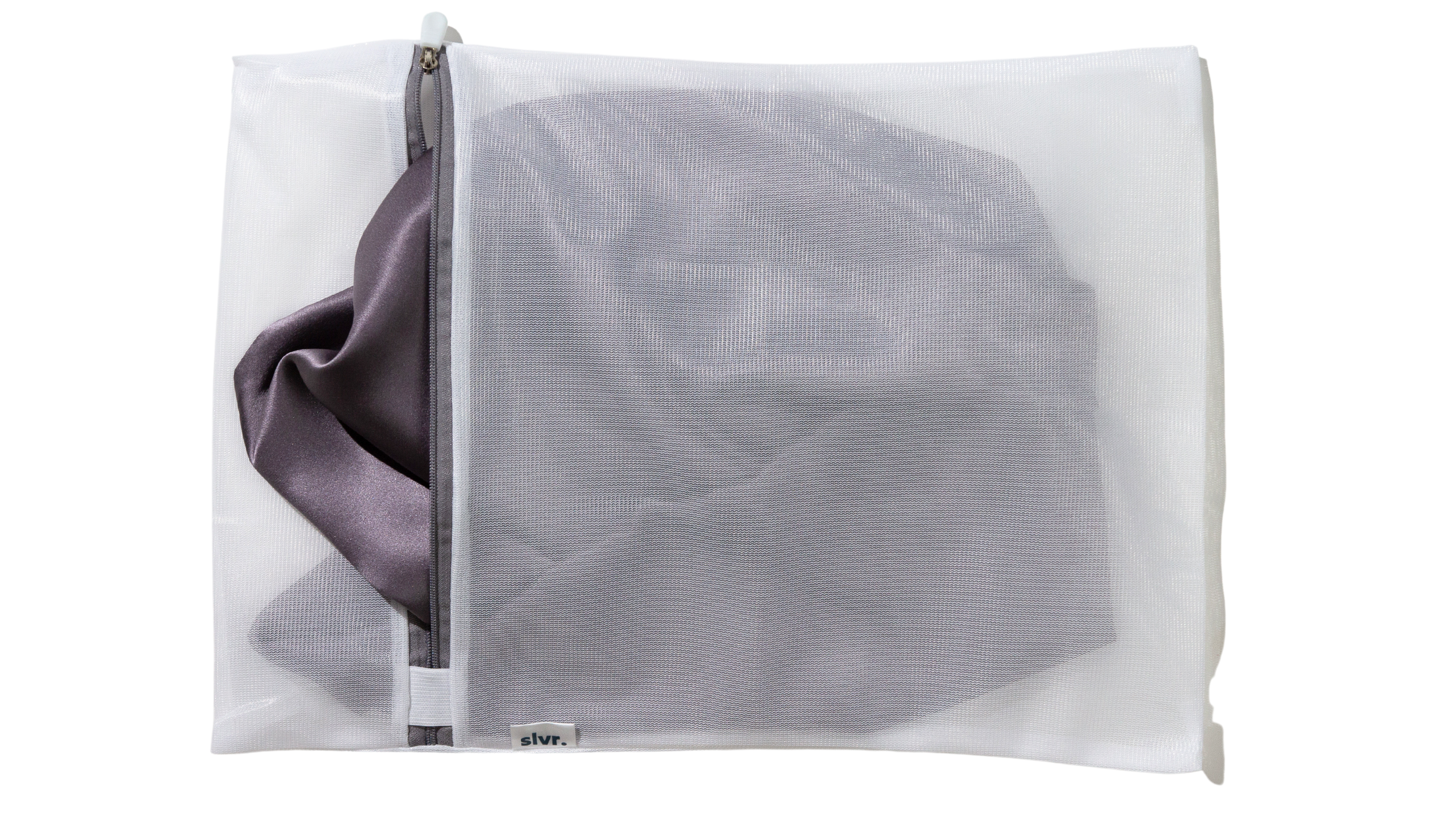 Introducing your pillowcase's best companion. Crafted meticulously to ensure that your prized anti-acne silk pillowcase endures every wash cycle, the SLVR Laundry Bag is a must-have addition to your laundry routine. Embracing our mantra, 'Protecting the Protector', this bag stands as a guardian against snags, tangles, and tears. Constructed with a high-grade mesh material, it allows optimal water flow while safeguarding the integrity of your pillowcase's delicate fibers. And with its robust zipper closure, you can confidently toss it into your machine, ensuring your pillowcase remains pristine wash after wash. Elevate your care regimen with this essential accessory. Your pillowcase deserves it.