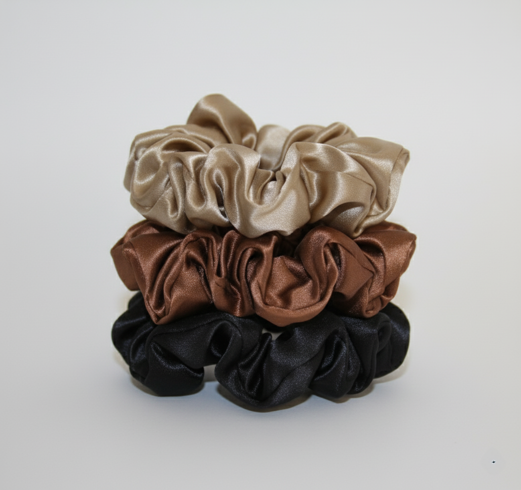 Unlike ordinary hair ties that tug, crease, and cause breakage, our scrunchies are made from 100% pure 6A mulberry silk — the highest grade available. The smooth silk fibres glide over your hair, reducing friction, frizz, and snapping while helping maintain your hair’s natural shine. Designed for daily wear, they offer a gentle, secure hold without the damage.